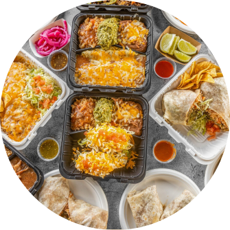 CHOICE OF MEAT: CARNE ASADA • AL PASTOR • CARNITAS • CHICKEN • SHREDDED BEEF • SPICY SHREDDED BEEF